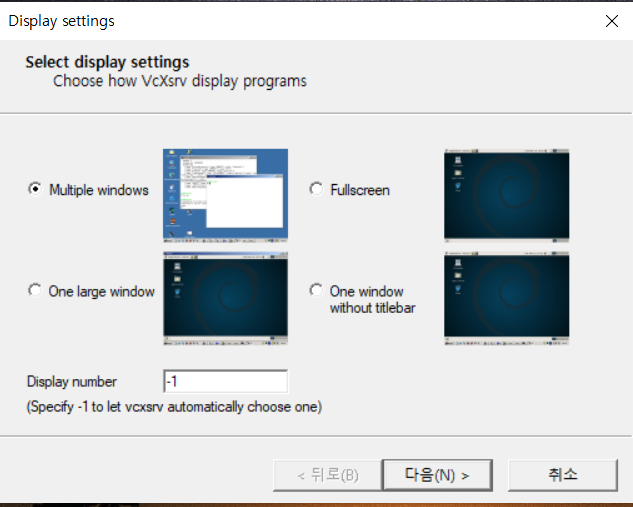 첫 번째 Multiple windows를 선택합니다.