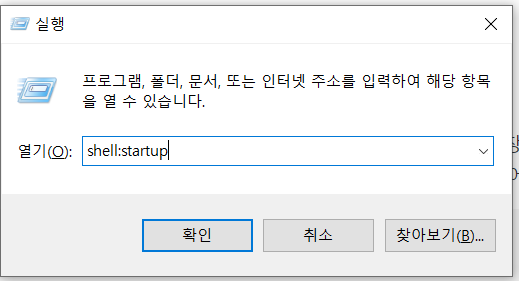 윈도우키 + r을 누르고 실행창에 shell:startup이라고 입력하세요. 컴퓨터를 켤 때마다 configuration 파일이 저절로 실행되도록 설정해주겠습니다. 만약에 wsl2를 자주 이용하지 않아서 필요할 때만 쓰시는 분은 바탕화면에 놓고 필요할 때만 실행하셔도 됩니다!