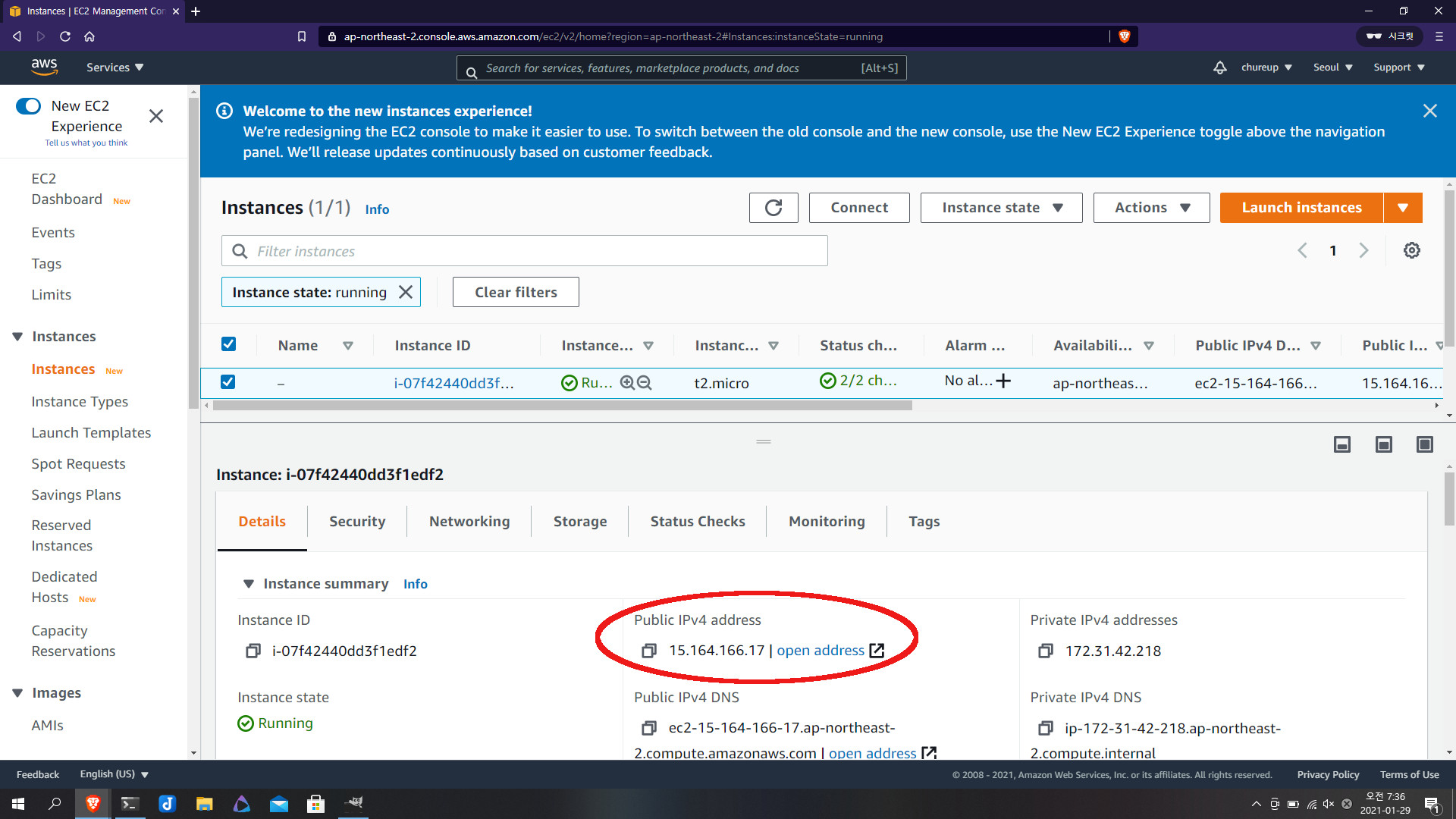 3. 인스턴스 타입을 고르는 화면이 나옵니다. 사양은 선택지가 없네요ㅠㅠ 기본 t2.micro를 선택해주세요.